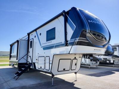 Enjoy luxury, innovation, and the outdoors in any one of Montana's finest fifth wheels. Each set the standard with exceptional features, and exciting factory installed options to provide you a great home on the road. Keystone's 12" I-beam chassis with z-frame technology provides a strong and durable foundation to your fifth wheel, and the four season living package will help extend your camping season. A few other construction features you will appreciate include a MORryde CRE3000 suspension, a fully walkable roof with an alpha seamless TPO membrane system, and 4k square frameless tinted safety glass windows. Each feature stylish interiors with two decor choices paired with beautiful hardwood cabinetry, Beauflor vinyl flooring throughout, central vacuum, plus a La-Z-Boy furniture package for all-around comfort!