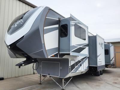 Uncover the benefits of owning a fifth wheel from Rich and Sons RV Headquarters in Grand Island, NE. Our models provide exceptional towing stability and luxurious interiors tailored for comfort on the road. Whether you're a seasoned traveler or new to the RV lifestyle, our selection accommodates all needs. To learn more or get started on your purchase journey, contact us or call (800) 439-2040.