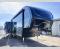 This unit is perfect for weekends at the campground or extended stays! There is ample seating with a sliding desk/dining table, 62" theater seating, and a 72" tri-fold sofa along the rear wall. You can easily relax and enjoy the telescoping TV with a cozy fireplace below. The kitchen offers all that you need to prepare and cook meals just like home with a 16-cu. ft. refrigerator for your perishables, a 30" residential microwave oven, and three burner range top and oven. You will love the kitchen island all outfitted with pull-out pet bowls and double pull-out trash bins with an integrated Stow & Go paper towel holder. There is also an 84" pantry with adjustable shelves for all of your canned and dry goods. Head up the steps to a find a full bath and a private bedroom with a king bed slide all the way up front. A sliding dresser top features hidden storage which is perfect for jewelry and other personal belongings. The front wardrobe features mirrored doors, and the corner closet has been prepped for a stackable washer and dryer if you choose to add that option.