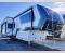 This Model Z luxury fifth wheel is bright and modern on the inside, with loads of amenities that will have you dreaming of your next trip! Enter and find a spacious combined living/kitchen space thanks to dual opposing slides. There is ample seating with a sliding desk/dining table, 62" theater seating, and a 72" tri-fold sofa along the rear wall. You can easily relax and enjoy the 50" Smart telescoping TV with a cozy fireplace below. The kitchen offers all that you need to prepare and cook meals just like home with a 16 cu. ft. refrigerator for your perishables, a 30" microwave oven, and three burner range top and oven. You will love the integrated spice rack, and the kitchen island all outfitted with dog bowls and double pull out trash bins with an integrated Stow 'N Go paper towel holder. There is also an 84" pantry with adjustable shelves for all of your canned and dry goods. Head up the steps to a private master suite with king bed slide. You can opt for the queen bed if you like. A sliding dresser top features hidden storage which is perfect for jewelry and other personal belongings. The front wardrobe features mirrored doors and the corner closet has been prepped for a stackable washer and dryer if you choose to add that option. Relax and enjoy a large bath featuring a linen cabinet, a 30" x 42" shower, and vanity with sink, plus medicine cabinet.